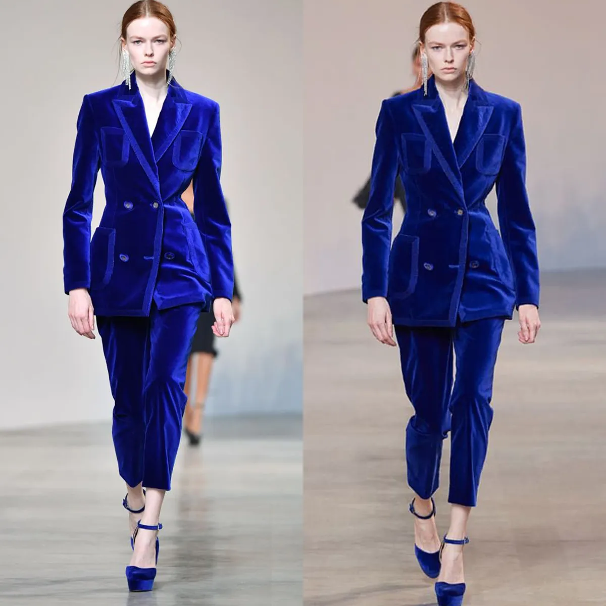 Модные тенденции: блестящий брючный костюм для женщин